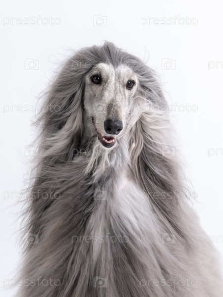 Афганская борзая портрет на белом фоне