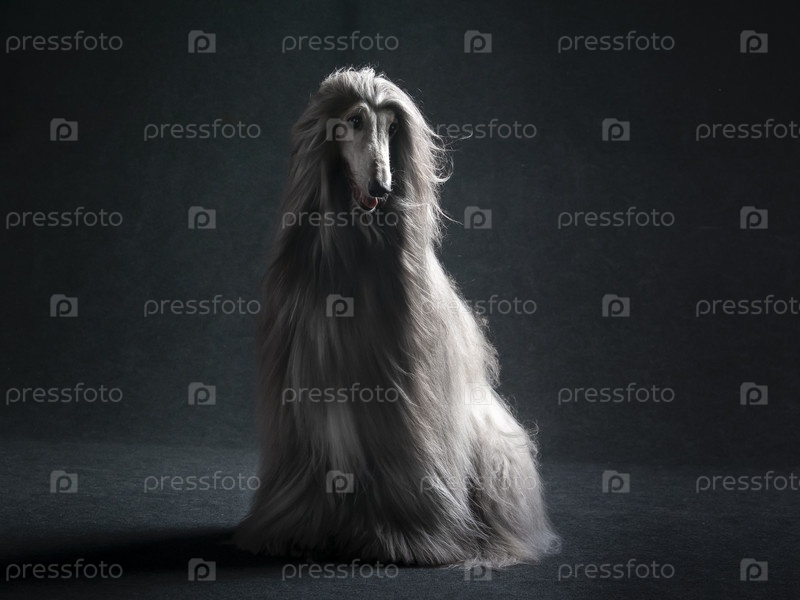 Афганская борзая сидит на черном фоне