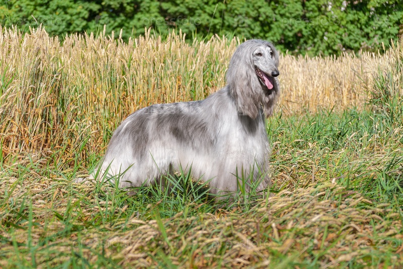 Афганская борзая стоит в поле