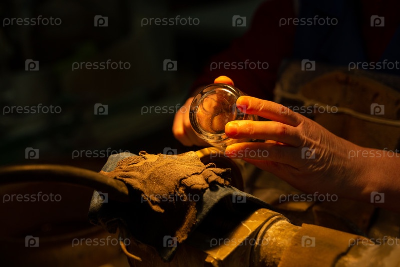Неузнаваемая женщина украшает стекло на производстве алмазным кругом