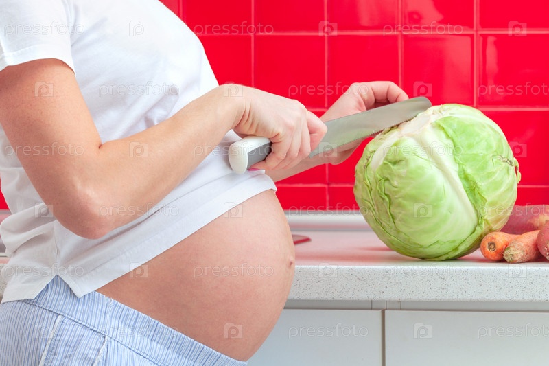 Беременная женщина готовит еду