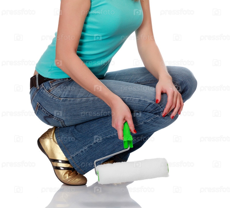 Женщина с валиком на белом фоне