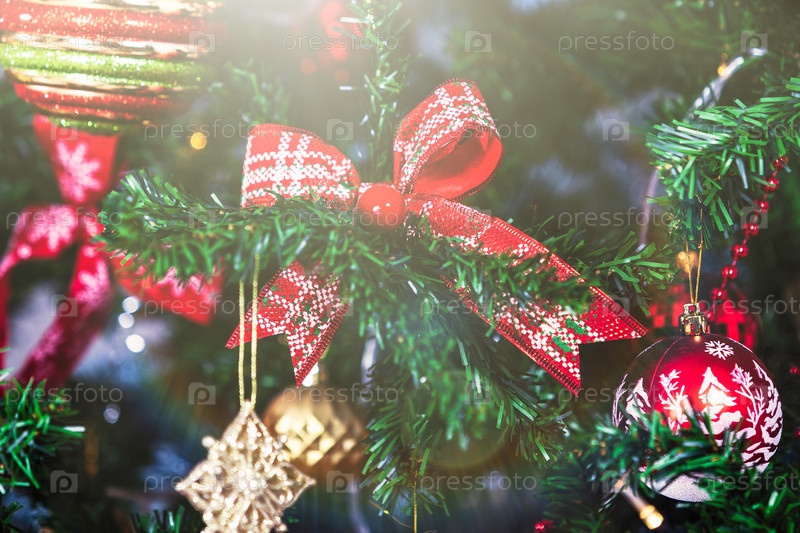 Крупным планом фотография красивой рождественской елки
