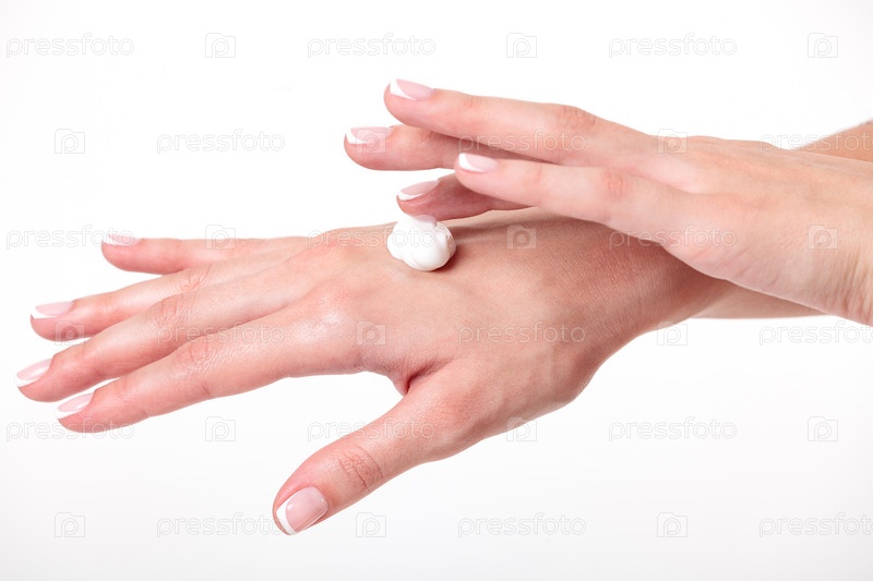 Крупным планом снимок рук красивой женщины с кремом на белом фоне