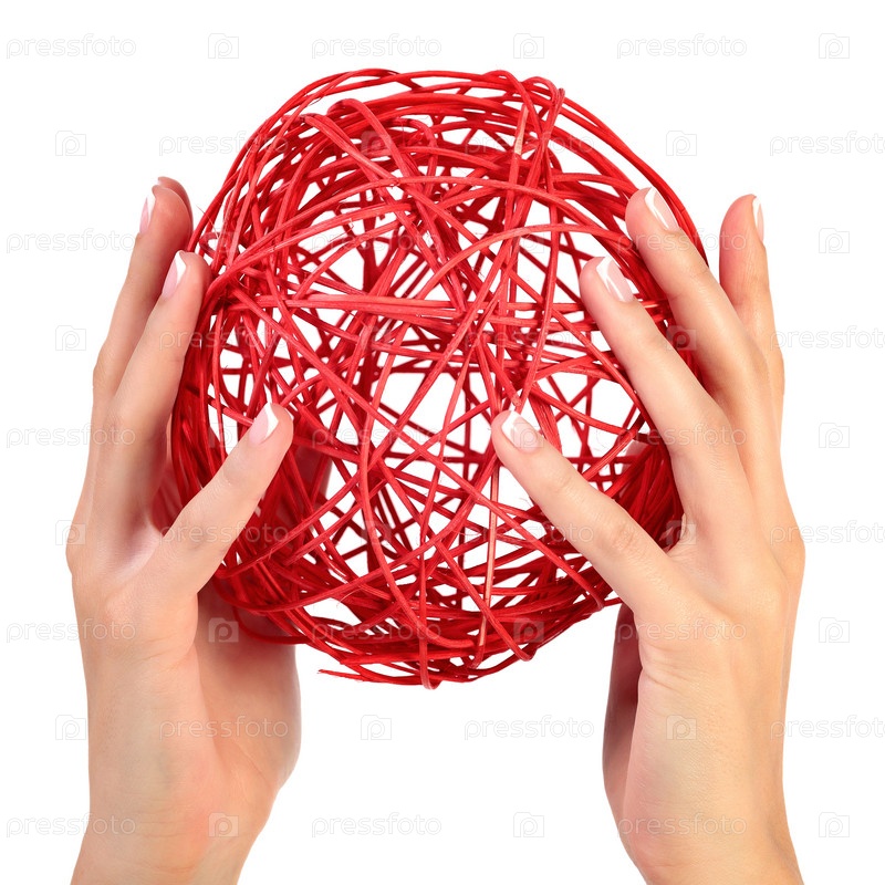 Женские руки с красным шаром, изолированные на белом фоне