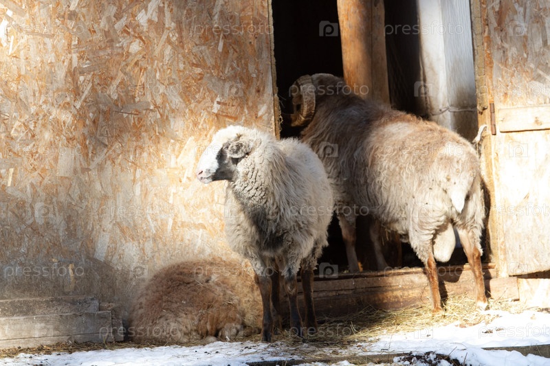 Баран и овца на ферме