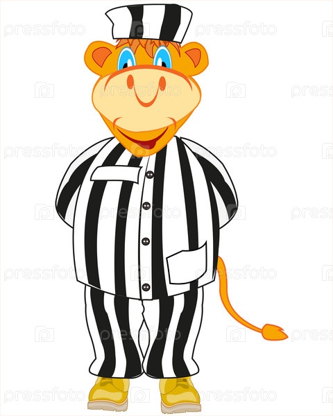 Векторная иллюстрация комического животного в полосатой ткани заключенного