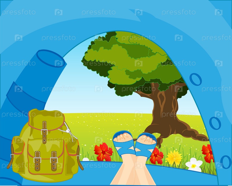 Красивый вид из туристической палатки на летней природе