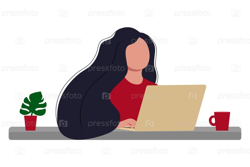 Женщина работает на ноутбуке в офисе