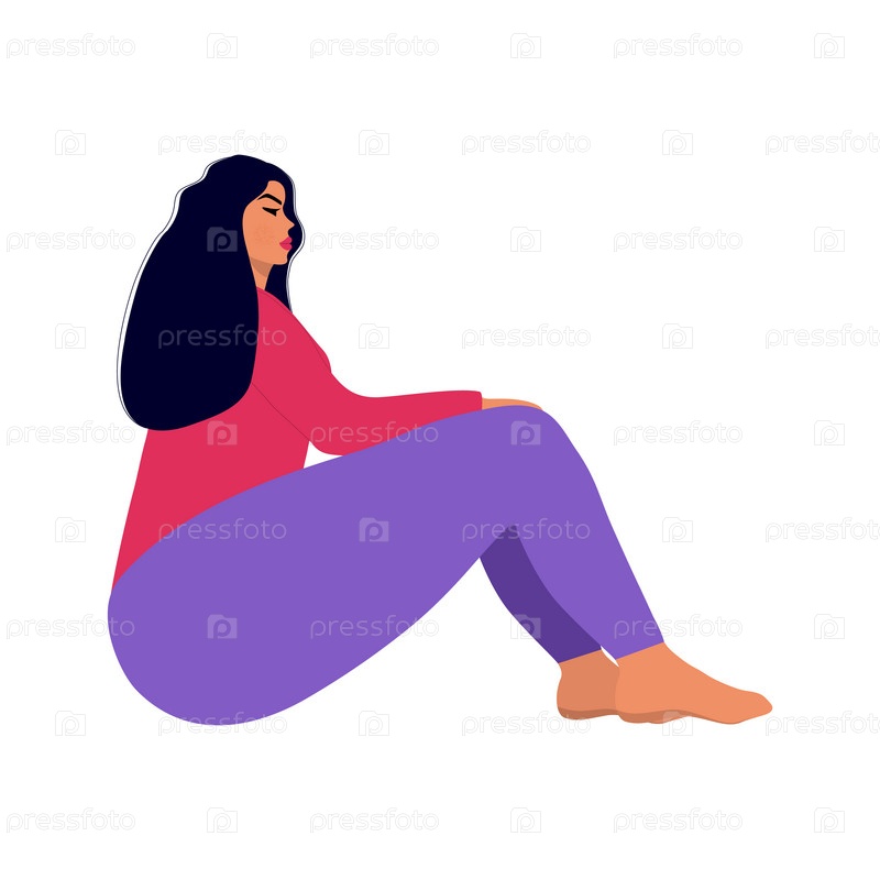 Одинокая грустная девушка сидит и смотрит вдаль