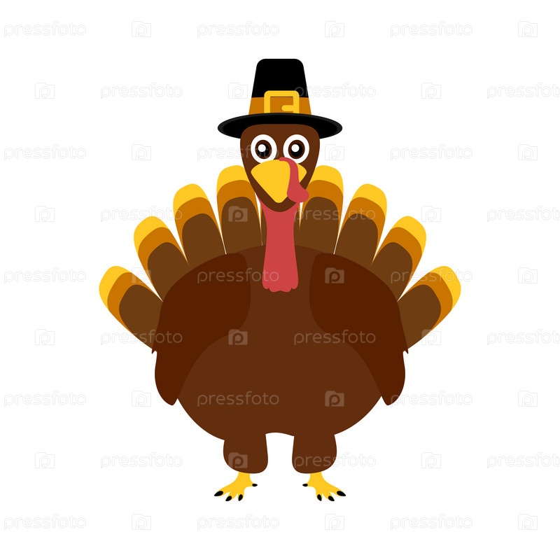 Индейка смешная День благодарения на белом фоне