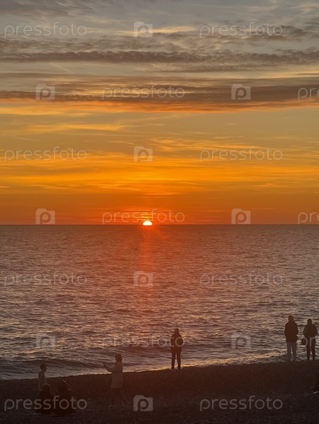 Красное солнце садится над морем