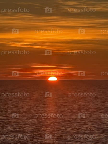 Красное солнце садится над морем