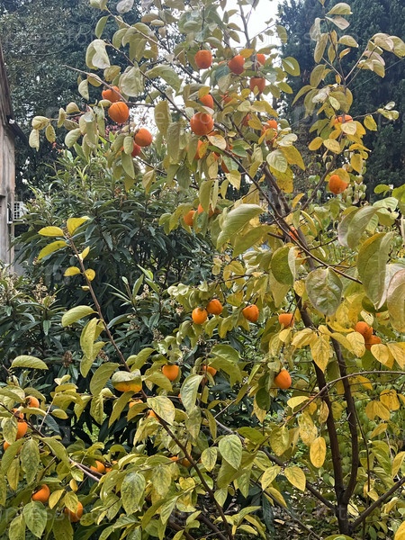 Спелая крупная хурма на дереве осенью