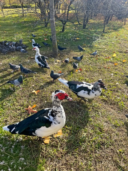 Индоутка в орнитологическом парке с другими птицами