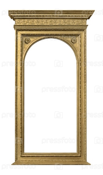 Панорамная золотая рамка для картин, зеркал или фото, изолированных на белом фоне. Элемент дизайна с обтравочным контуром