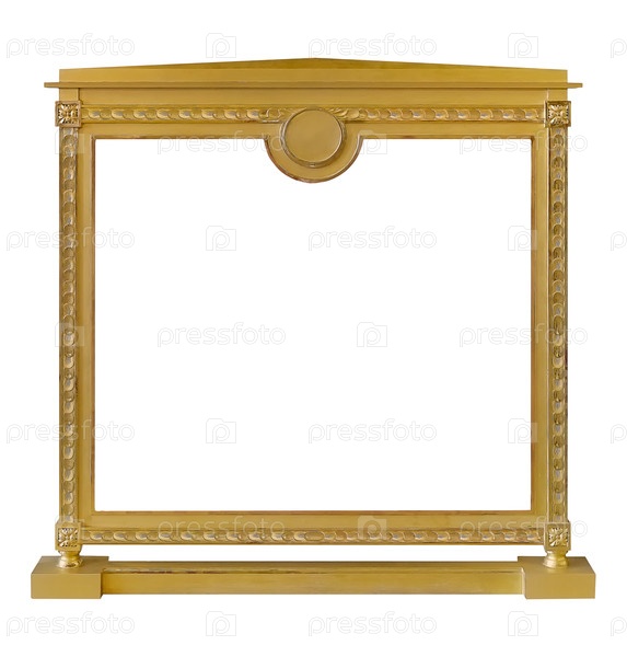 Золотая рамка для картин, зеркал или фото, изолированных на белом фоне. Элемент дизайна с обтравочным контуром