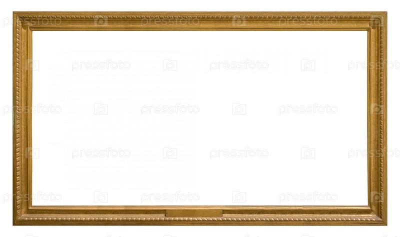 Панорамная золотая рама для картин, зеркал или фотографий на белом фоне