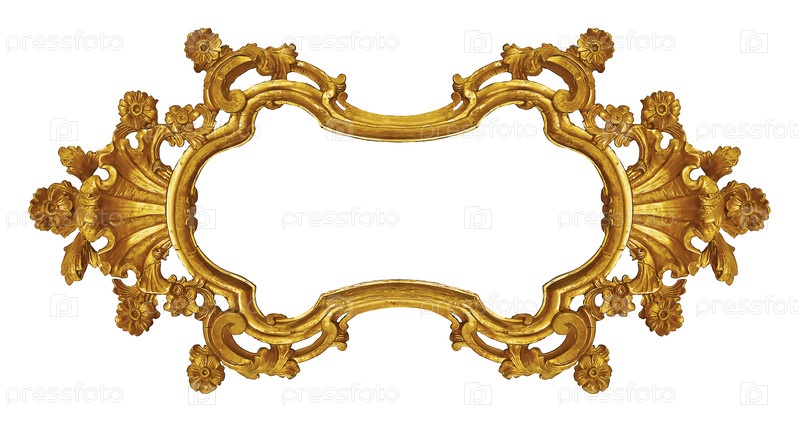 Золотая рамка для картин, зеркал или фото, изолированных на белом фоне. Элемент дизайна с обтравочным контуром