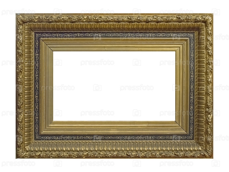 Золотая рамка для картин, зеркал или фото, изолированных на белом фоне. Элемент дизайна с обтравочным контуром