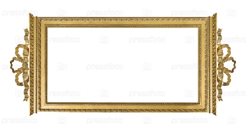 Золотая рамка для картин, зеркал или фото, изолированных на белом фоне. Элемент дизайна с обтравочным контуром