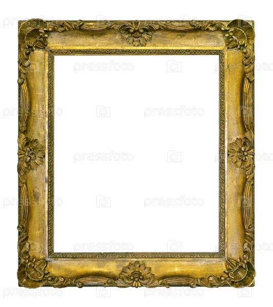 Золотая рамка для картин, зеркал или фото, изолированных на белом фоне. Элемент дизайна с обтравочным контуром