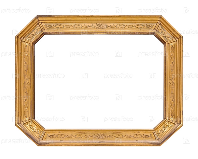 Золотая рамка для картин, зеркал или фото, изолированных на белом фоне. Элемент дизайна с обтравочным контуром