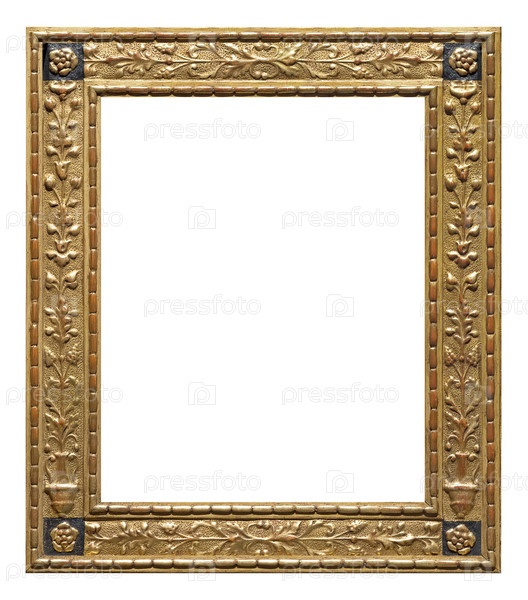 Золотая готическая рамка для картин, зеркал или фото, изолированных на белом фоне. Элемент дизайна с обтравочным контуром