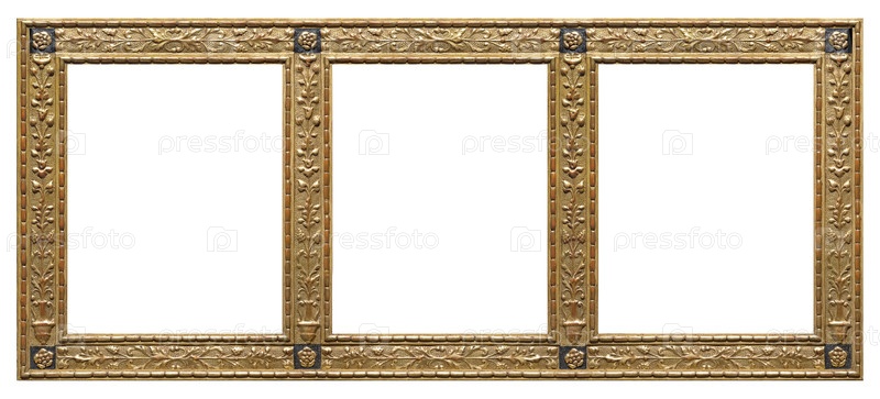 Золотая готическая рамка для картин, зеркал или фото, изолированных на белом фоне. Элемент дизайна с обтравочным контуром