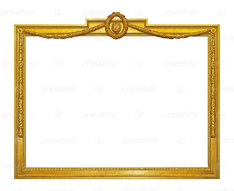 Золотая рамка для картин, зеркал или фото, изолированных на белом фоне. Элемент дизайна с обтравочным контуром