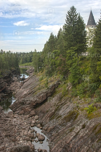 Скалистый пейзаж в городе Иматра (Финляндия, Суоми) в летний день