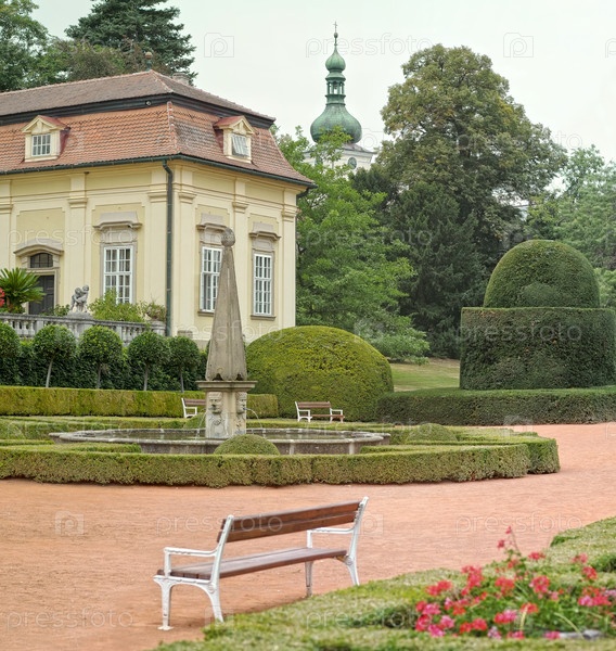 Регулярный парк и дворец Бухловице (Чешская Республика) в летний день
