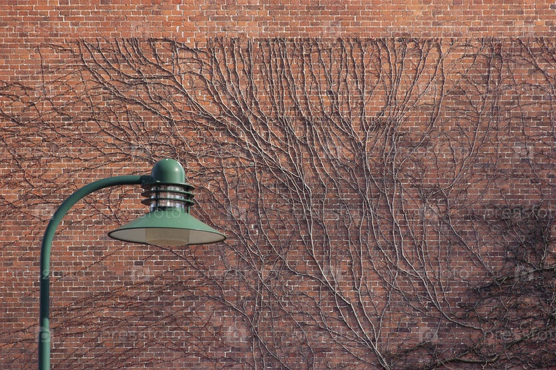 Изолированная старая кирпичная стена и сухой ствол старого дерева для создания дизайнерского фона (Собор Роскилле, Дания)