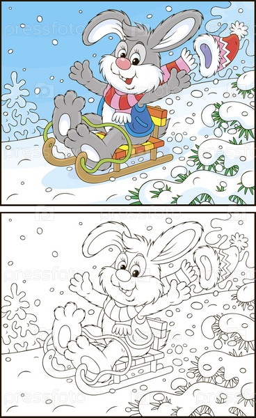 Раскраска. Милая мультяшная детская картинка или открытка