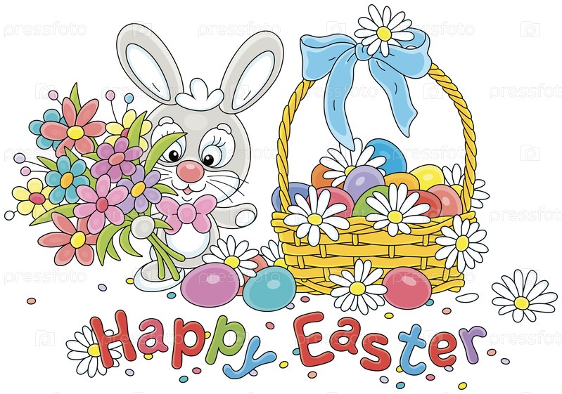 Раскраска. Милая мультяшная детская картинка или открытка. Happy Easter