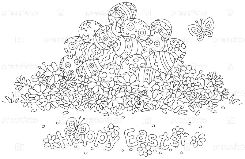 Раскраска. Милая мультяшная детская картинка или открытка. Happy Easter