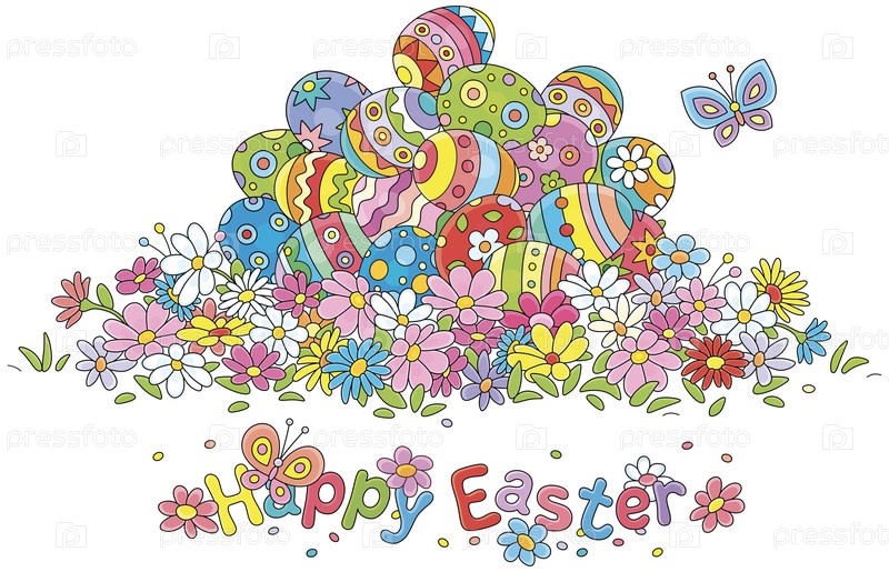 Раскраска. Милая мультяшная детская картинка или открытка. Happy Easter