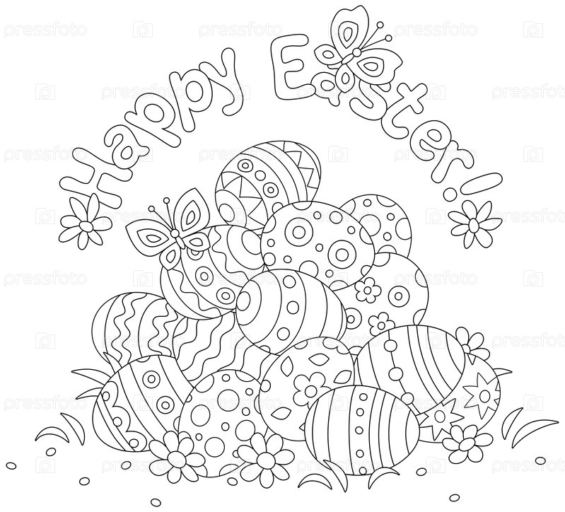 Раскраска. Милая мультяшная детская картинка или открытка. Happy Easter