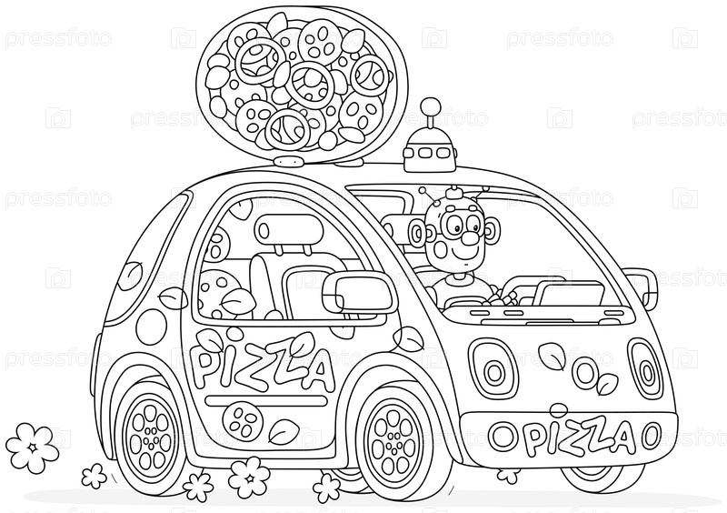 Робот в автомобиле доставляет пиццу