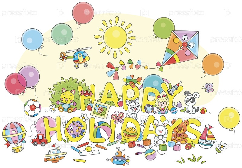 Раскраска. Милая мультяшная детская картинка или открытка .Каникулы