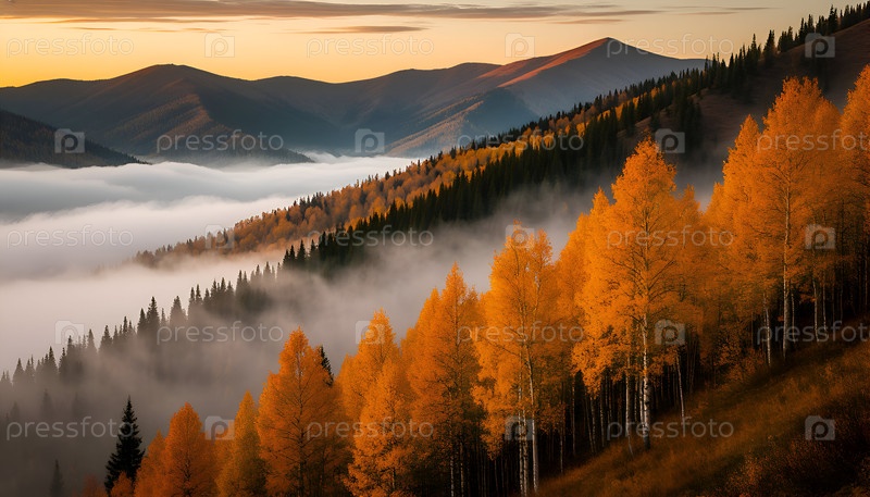 Туманное утро: Осенняя загадка в горах
