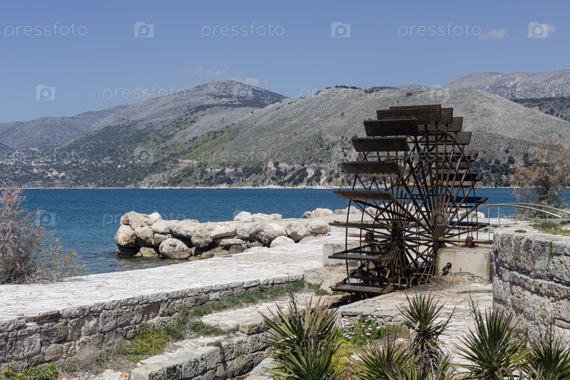 Древняя водяная мельница в карстовой воронке недалеко от моря (Греция, Аргостоли, Кефалония)