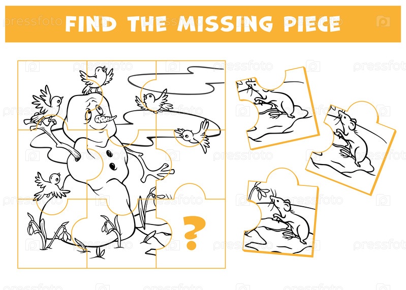 Найдите недостающий элемент пазла. Развивающая игра для детей с тающим снеговиком, весенними первоцветами и летающими птицами. Выберите правильный элемент. Закончите рисунок. Задание на внимание для подготовки к школе
