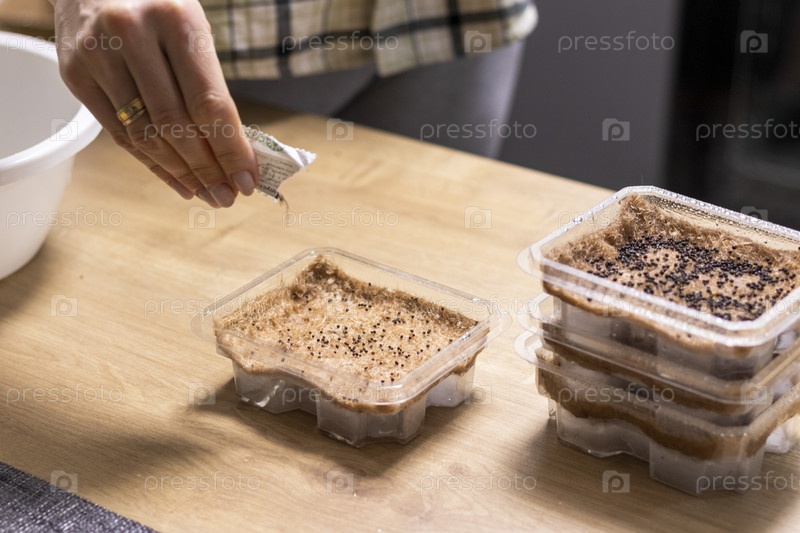Человек сажает семена микрозелени на джутовый коврик. Еда