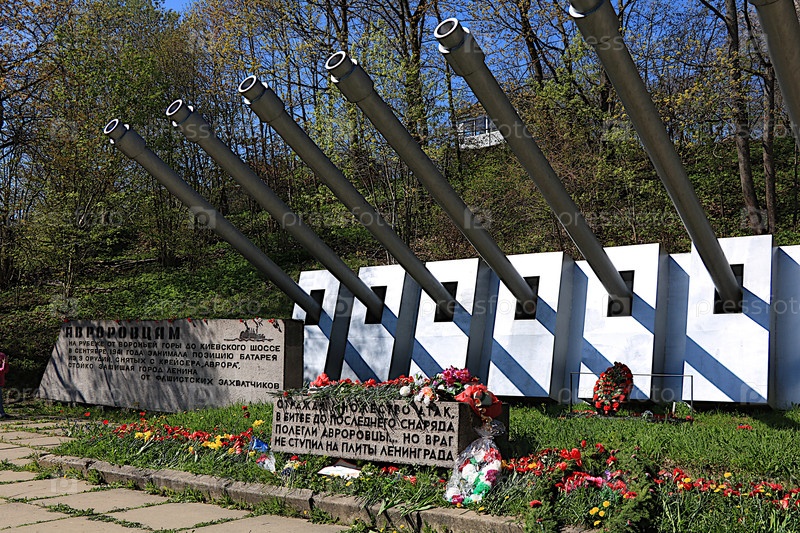 Россия, Санкт-Петербург, 9 мая 2019 г. На фото памятник на Вороньей горе авроровцам, защищавшим Ленинград в 1941 году и погибшим в ожесточенных боях. Здесь возлагают цветы в День Победы