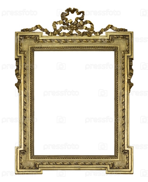 Золотая рамка для картин, зеркал или фото, изолированных на белом фоне. Элемент дизайна с обтравочным контуром
