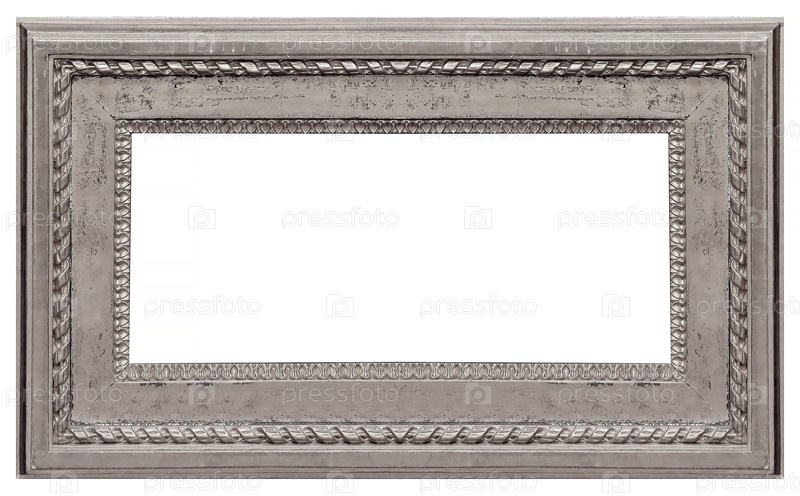 Панорамная серебряная рама для картин, зеркал или фотографий на белом фоне