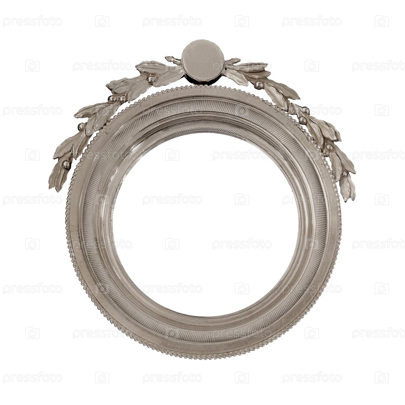 Серебряная круглая рамка для картин, зеркал или фотографий на белом фоне
