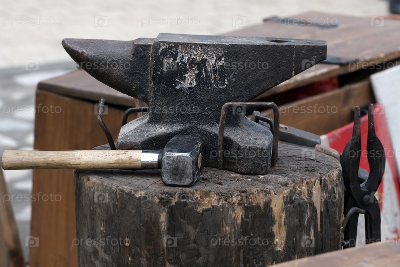 Старинная наковальня для кузнеца на фестивале исторической реконструкции