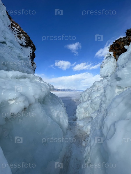 Большое ледяное образование на фоне голубого неба